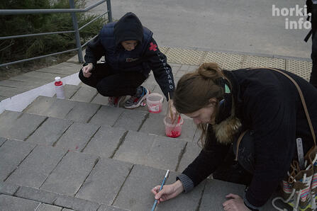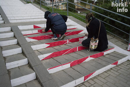 На этих выходных в Горках появится полностью раскрашенная лестница-вышиванка. Она расположена возле "Парнаса". Посмотрите на первые фото.